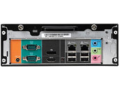 The flat case barely measuring 24 x 20 x 7.2 cm (DWH) can be equipped with up to three drives. Installation options for 3x 2.5" HDD/SSD drives or alternatively 2x 2.5" HDD/SSD drives plus an optical slimline drive are available. A 3.5" drive can also be installed using the PHD4 accessory which is sold separately. 3x SATA 6 Gbit/s and 1x SATA 3 Gbit/s are available. There are also two Mini-PCIe 2.0 slots inside which can be used for expansion cards, e.g. for a WLAN or an mSATA SSD drive. Neither the Shuttle Barebone XH81 nor the XH81V skimps when it comes to connections - with DisplayPort, HDMI, USB 3.0 Gigabit LAN, RS 232 and 5.1 Audio, for example, high connectivity can be found on the front and the back panel.
