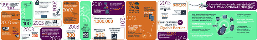 This year, Wi-Fi Alliance celebrates 15 years of connecting people and improving everyday lives with Wi-Fi. Interoperability, ease of use, and innovation have made Wi-Fi one of the greatest success stories of the last century, and Wi-Fi Alliance has an extensive roadmap to carry the technology well into the future. Since its founding in 1999, the industry organization has been delivering on its vision of seamless connectivity -- evolving its technologies and certification programs to keep pace with the requirements of today's connected world.