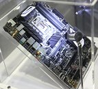 ASUS' mainline motherboard lineup based on the upcoming Intel Z170 chipset could retain the black + glossy white design scheme from the company's X99 mainline motherboard series. The company showed off its premium upper-mid segment Z170-Pro motherboard, which could be sold around the $170-$190 price range. This socket LGA1151 motherboard offers a 16-phase CPU VRM, a new high-capacity VRM heatsink design; and four DDR4 DIMM slots, supporting up to 64 GB of dual-channel DDR4-3000 memory.